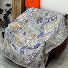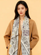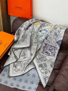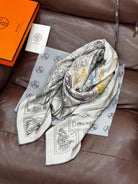 HM 25s Velvet Square Scarf 140cm Blue White Black Cashmere Silk 970939