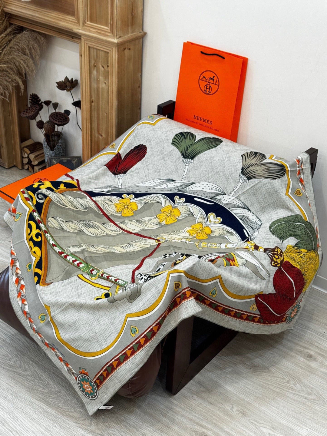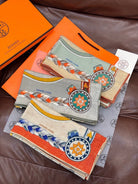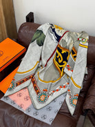 HM 25s Velvet Square Scarf 140cm Gray Yellow Cashmere 976220