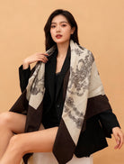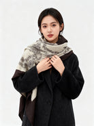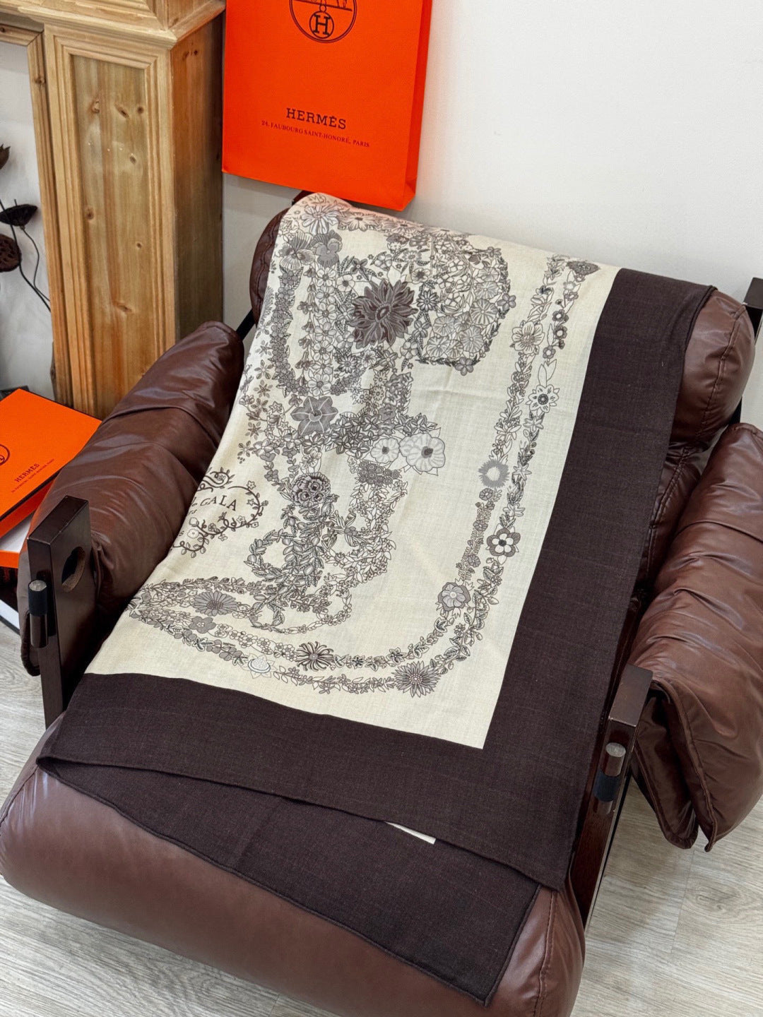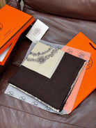 HM 25s Velvet Square Scarf 140cm Light Beige Black Cashmere 976212
