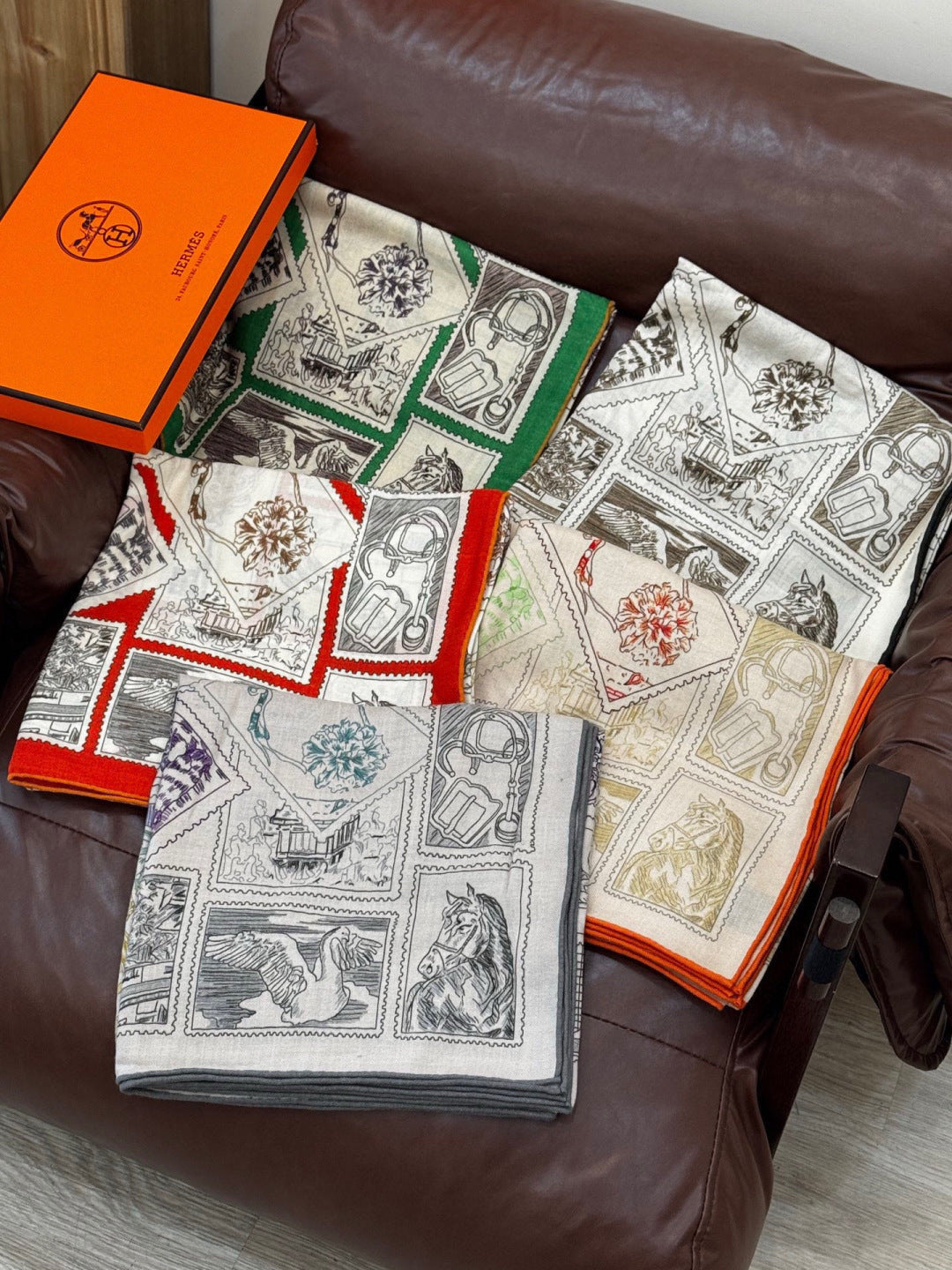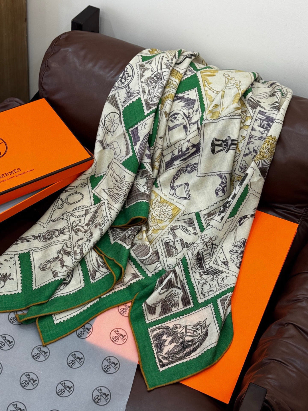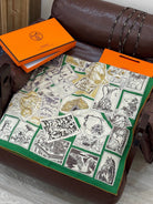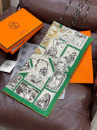 HM 25s Velvet Square Scarf 140cm Light Beige Green Cashmere Silk 970937