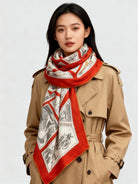 HM 25s Velvet Square Scarf 140cm Orange White Black Cashmere Silk 970940