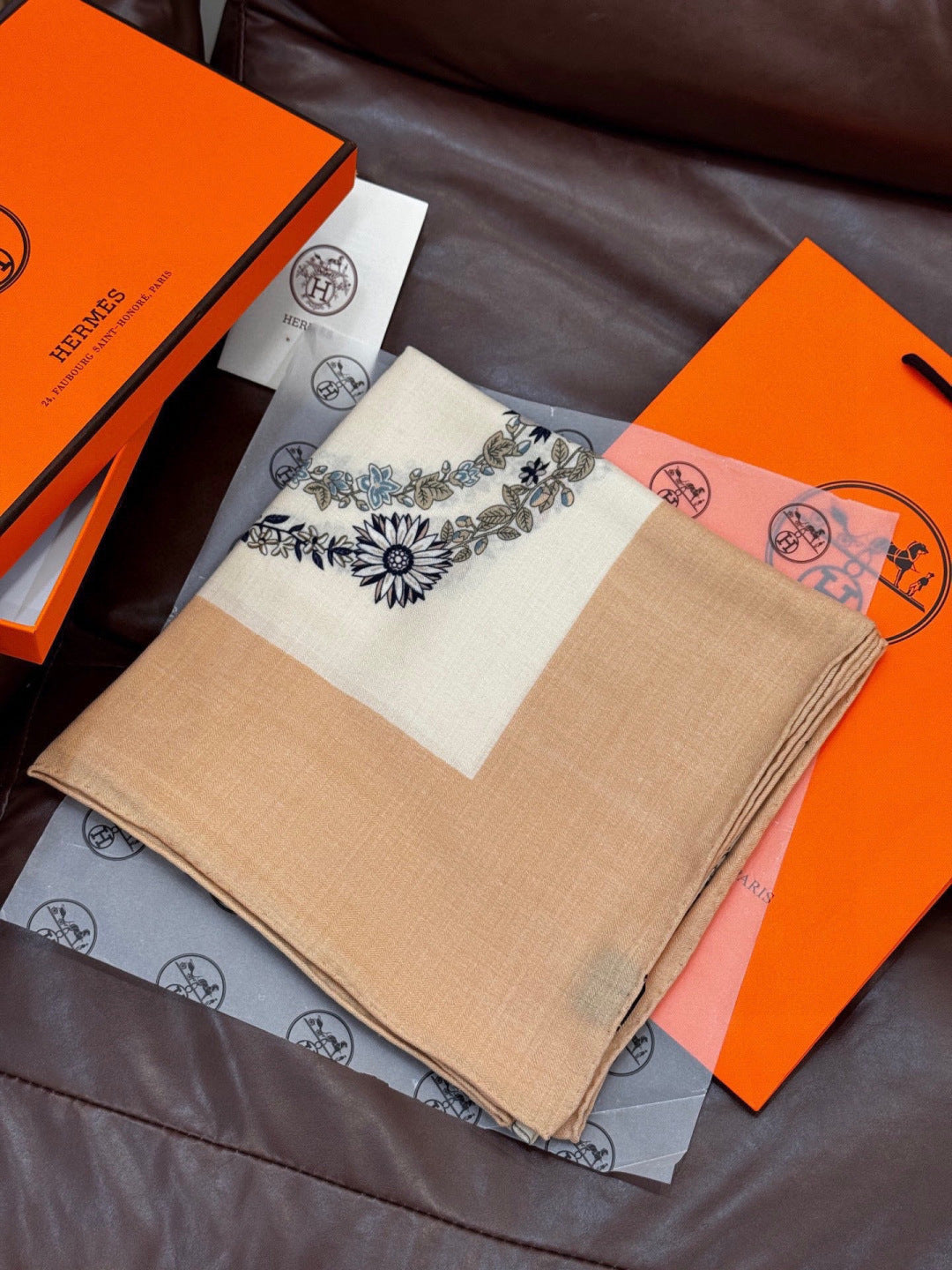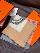 HM 25s Velvet Square Scarf 140cm White Beige Black Cashmere 976216
