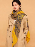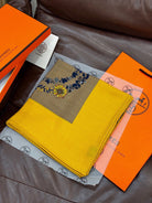 HM 25s Velvet Square Scarf 140cm Yellow Brown Cashmere 976217