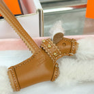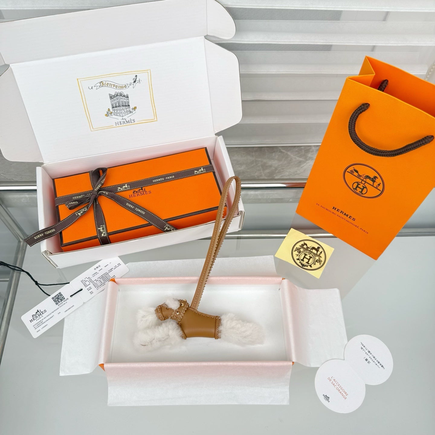 HM Budy Puppy Pendant Charm White Brown Wool Cowhide