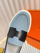 HM Denim Casual Loafer Blue Black Cowhide Cloth 317067