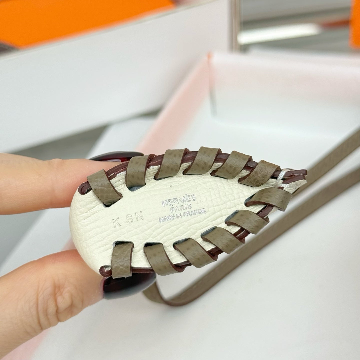 HM Horse Head Charm White Taupe Calfskin