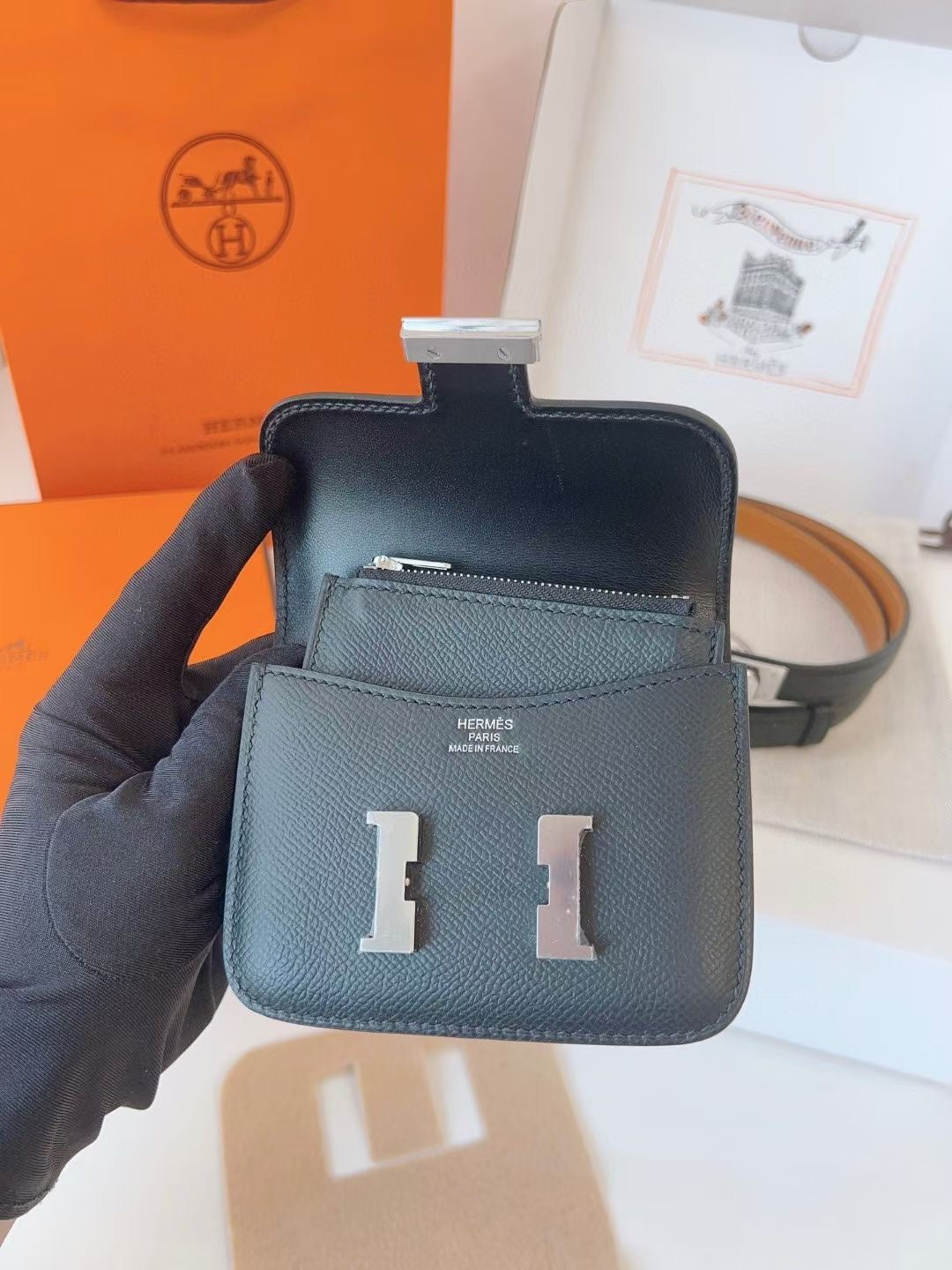 hm kelly belt 18mm with constance slim black epsom silver hardware