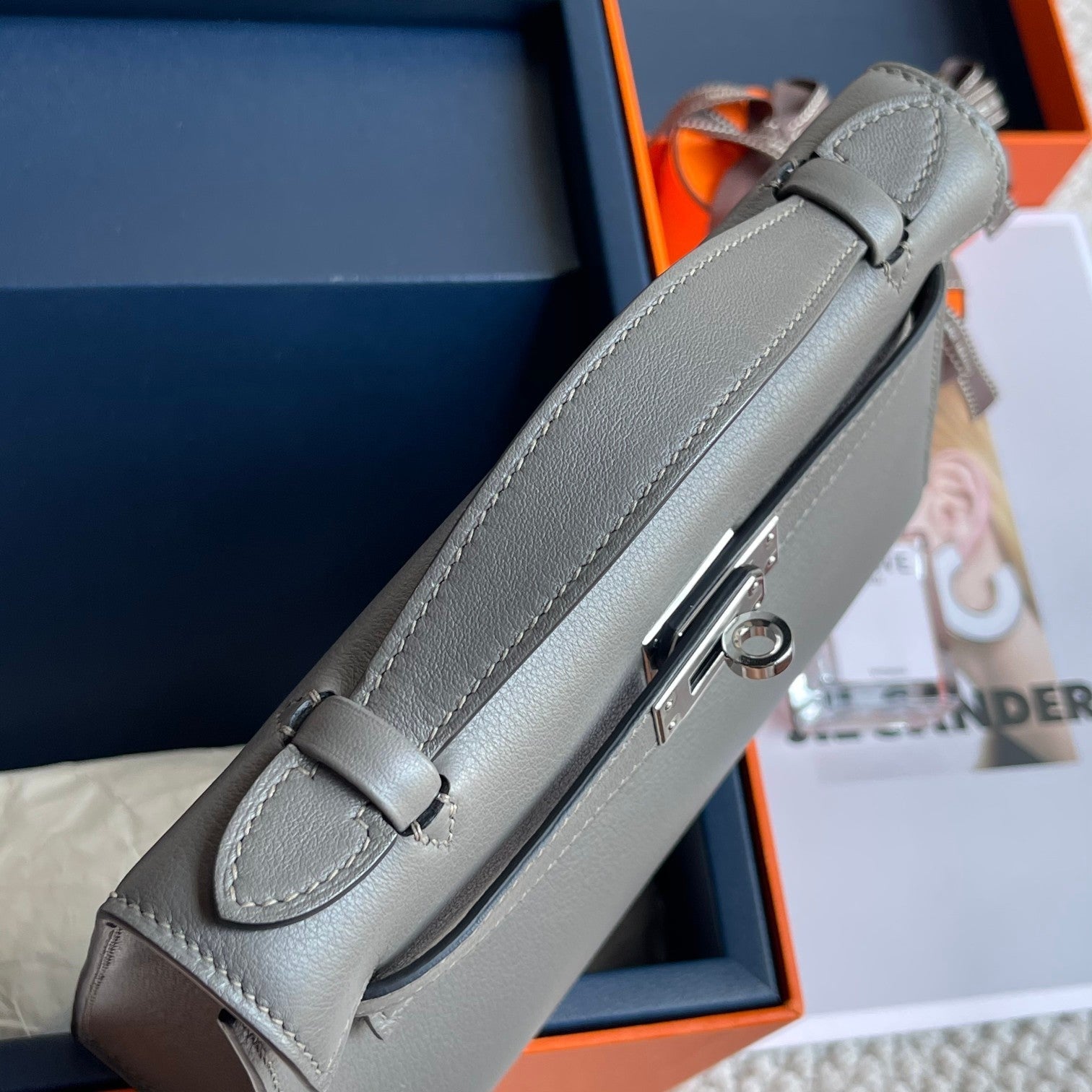 HM Kelly Pochette 22cm Smoke Gray Swift Silver Hardware