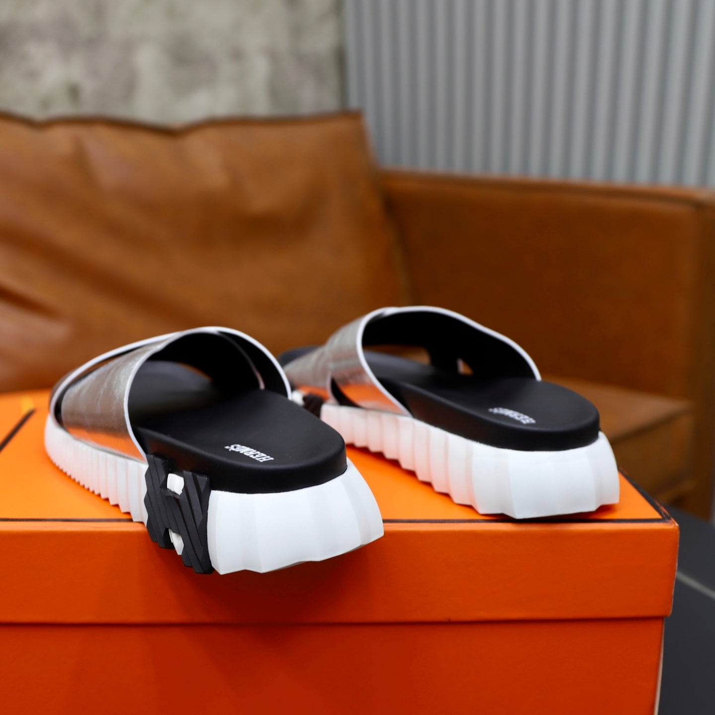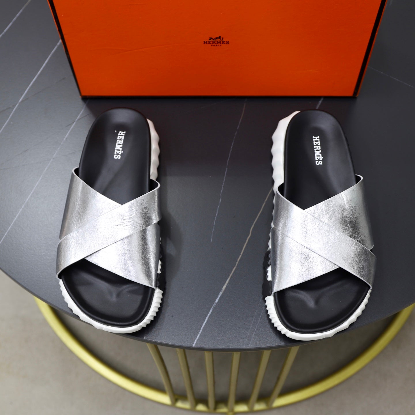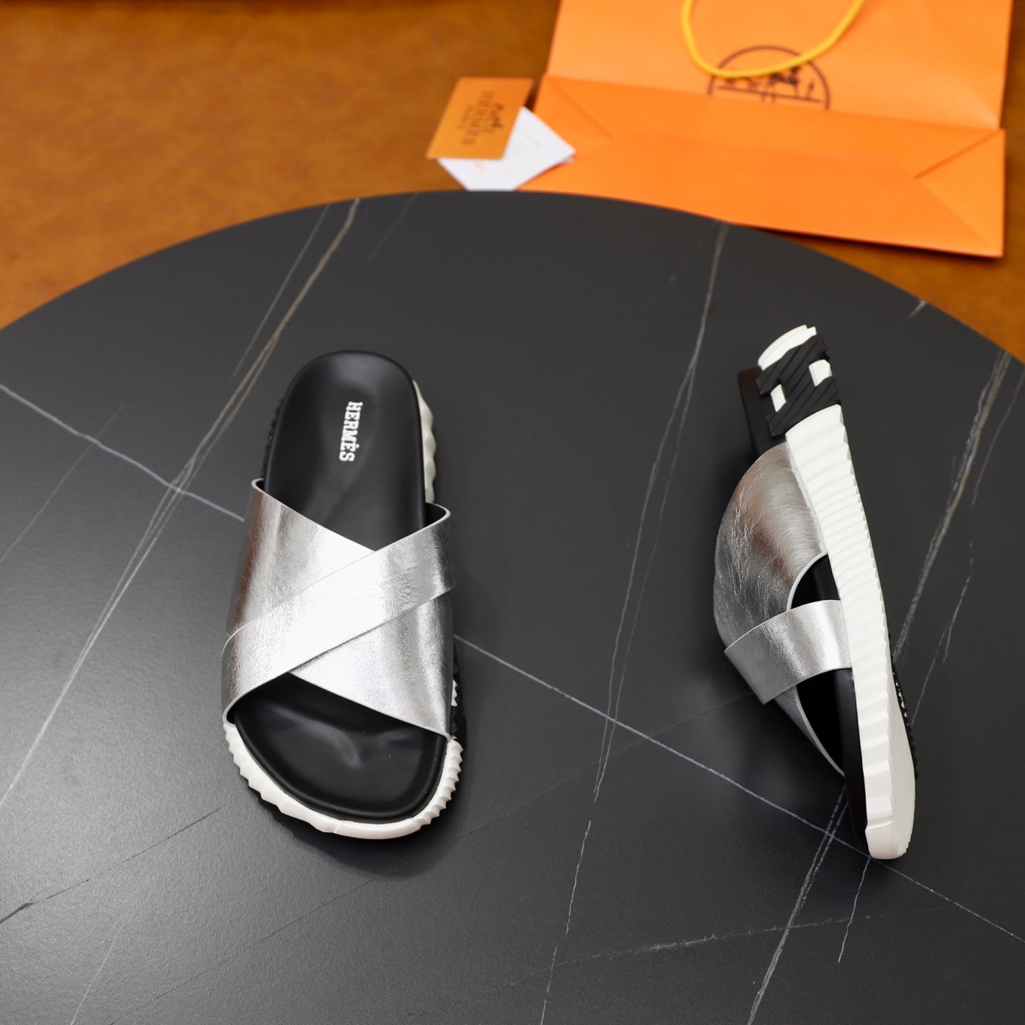 HM Men's Infra Slide Silver Calfskin 711698