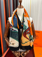 HM Newest Design Scarf 200CM Orange Beige Black Cashmere 976449