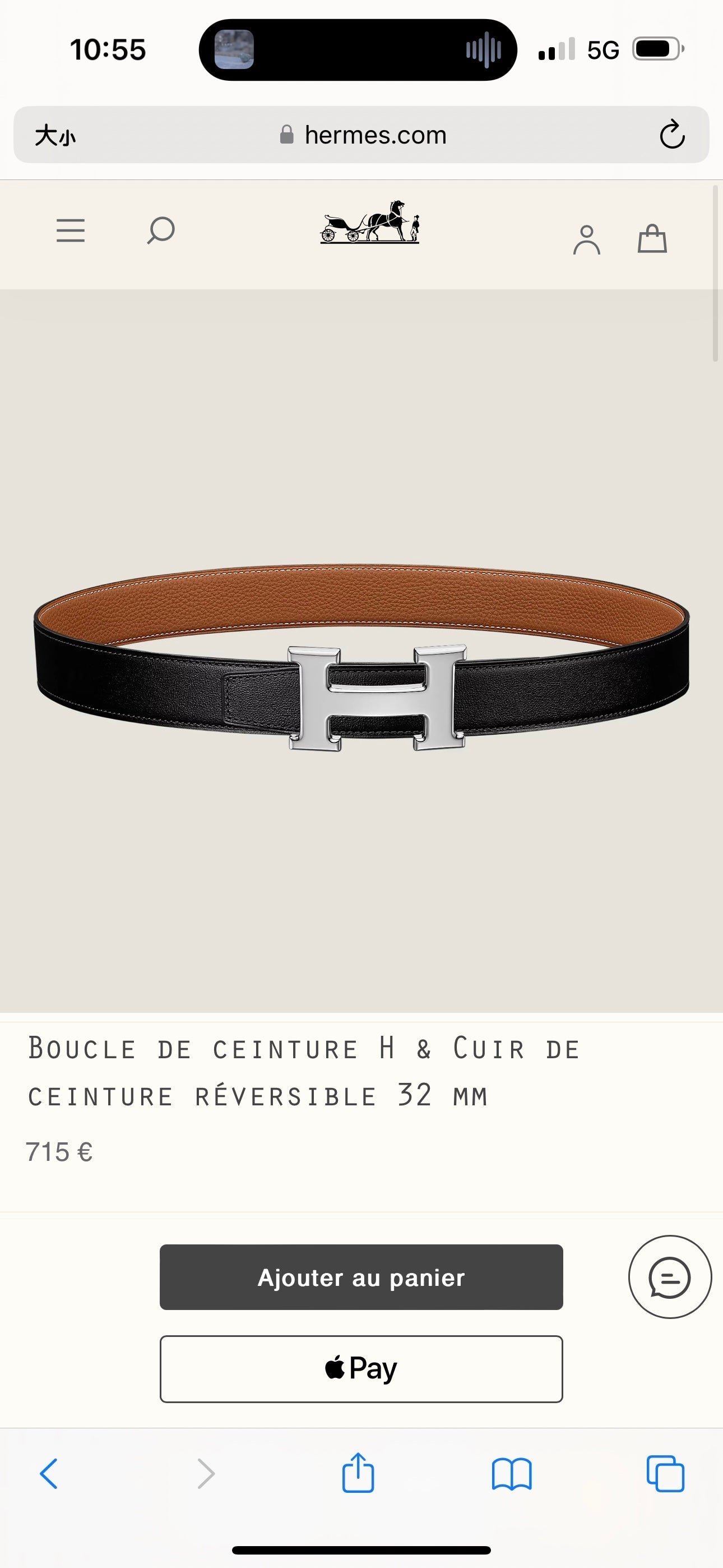 HM Silver H Buckle & Reversible 32mm Belt Brown mix Black leather 124655