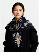 HM Starry Night Chorus Scarf 140cm Navy Blue Beige Cashmere 970970