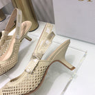 JAdior slingback pumps 65 transparent mesh beige embroidered cotton