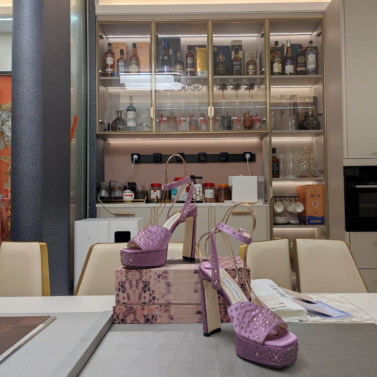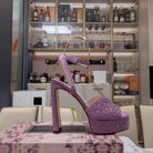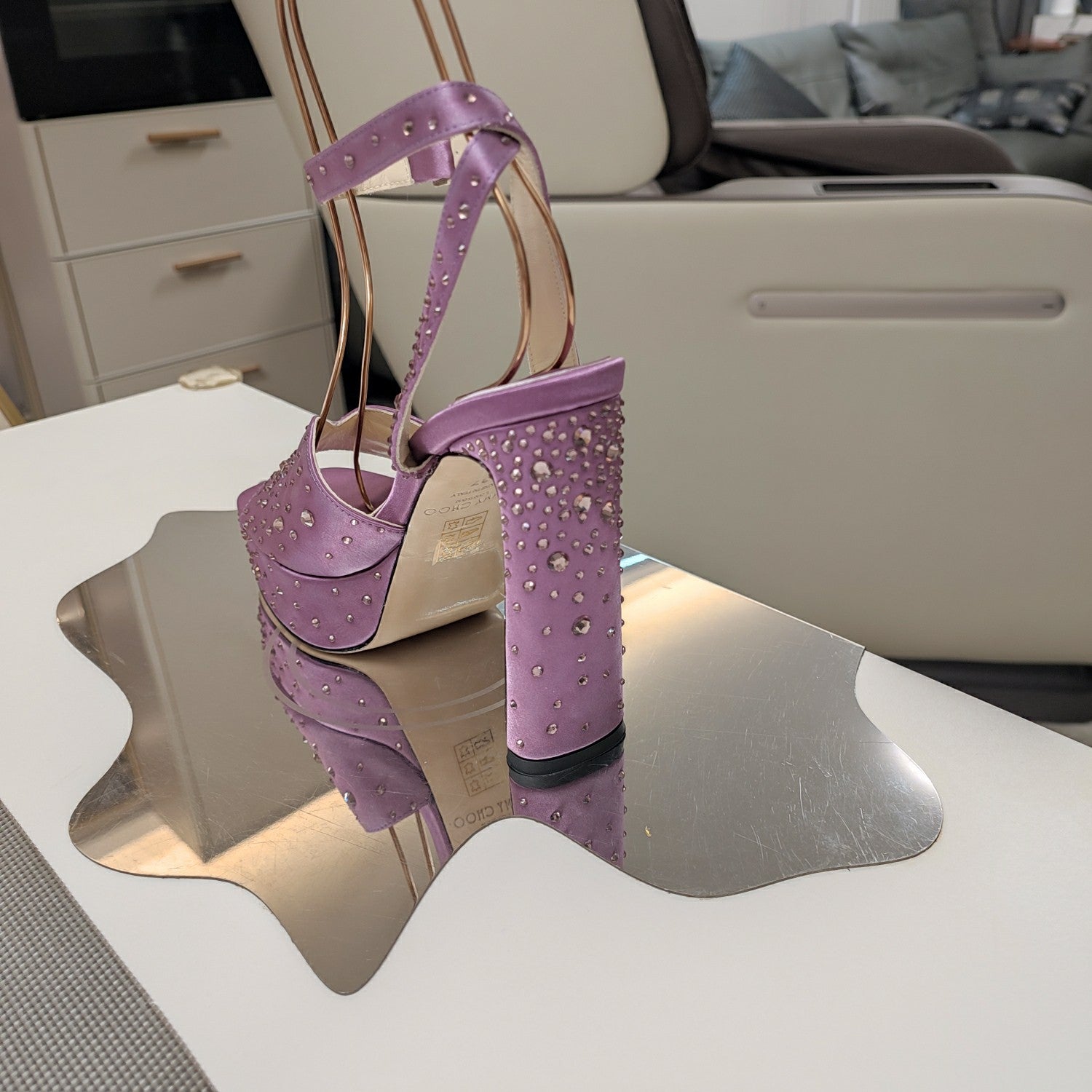 Jimmy 25 Platform Sandal Heels Lilac Purple Silk Satin 240011