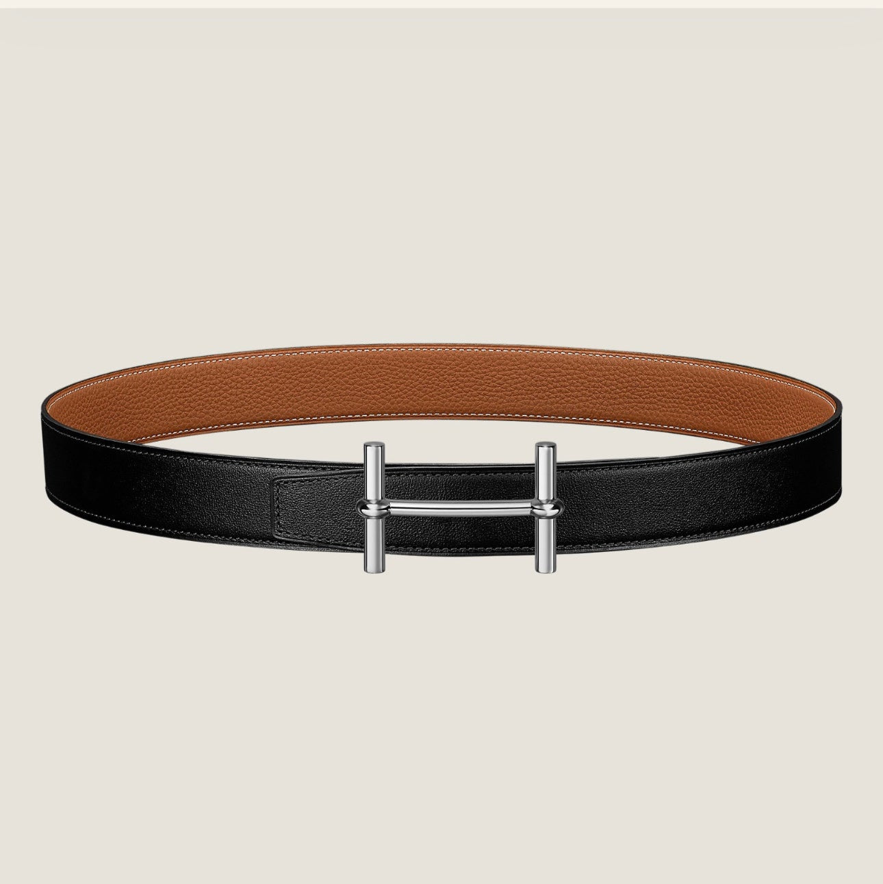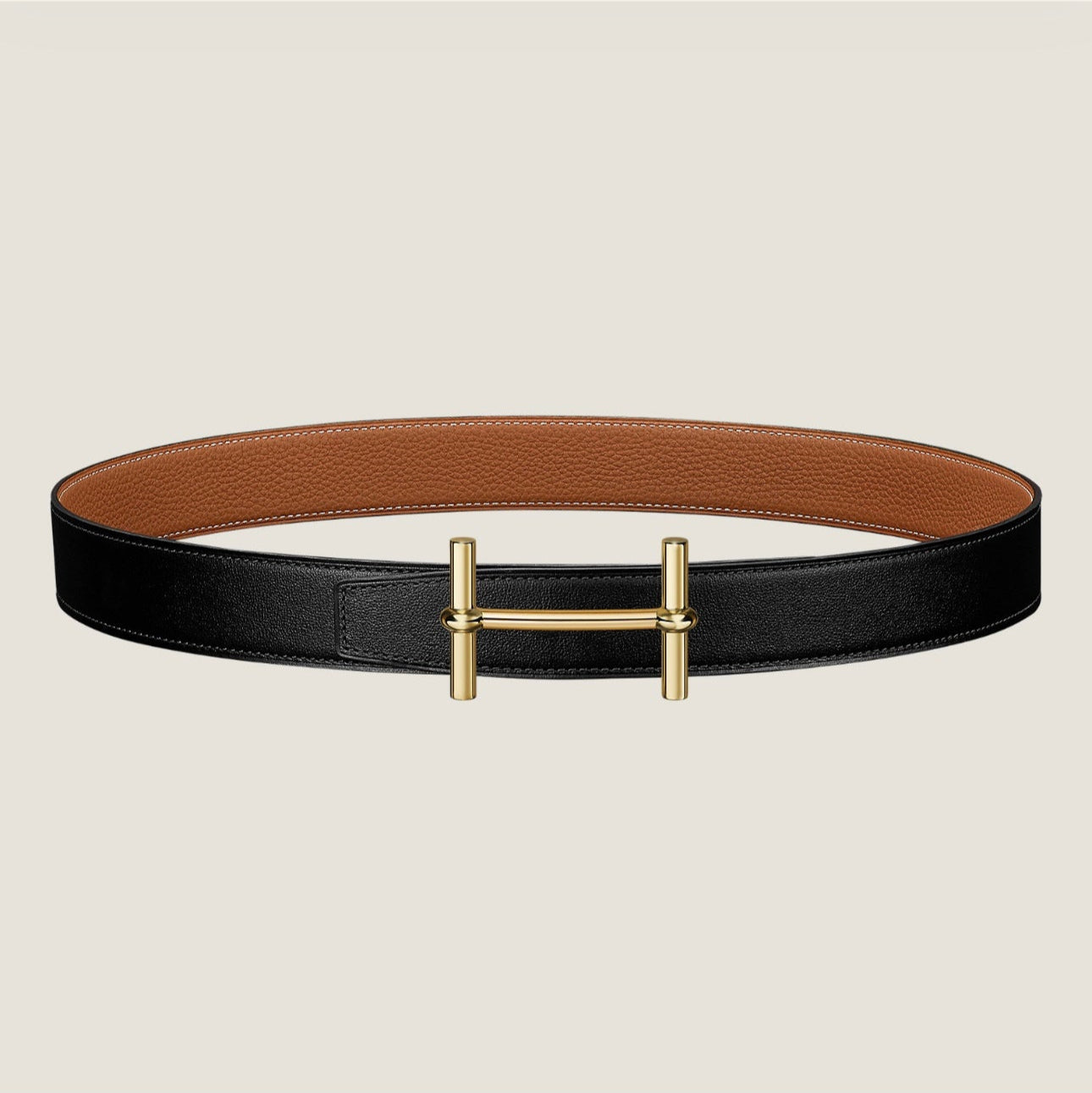 JUMBO BELT GOLD BUCKLE & REVERSIBLE CAMEL BROWN AND ORANGE LEATHER STRAP 32MM