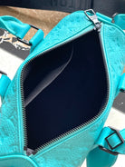 KEEPALL BANDOULIÈRE 25 IN TURQUOISE BLUE MONOGRAM EMBOSSED CALFSKIN