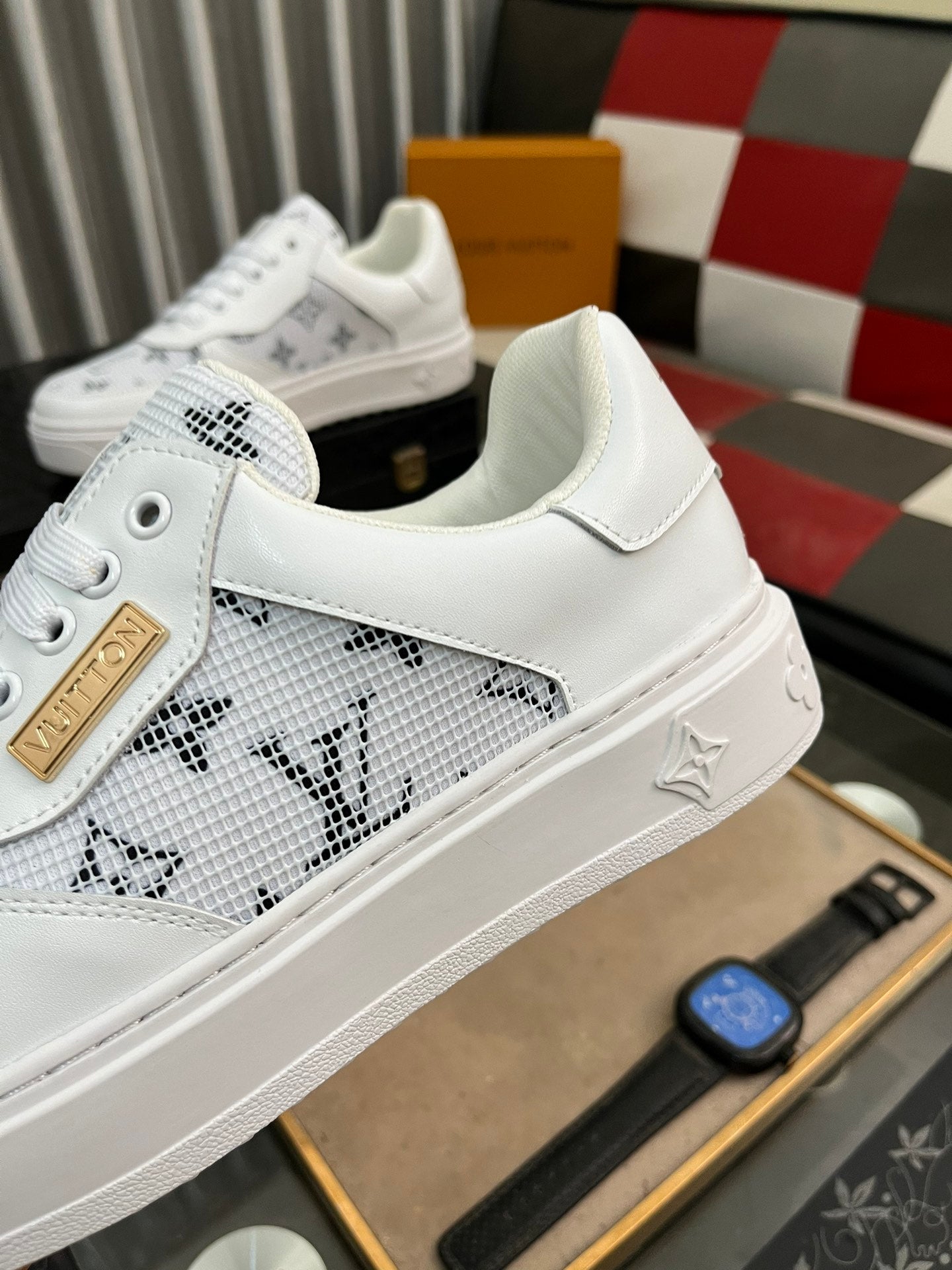 LV CLASSIC TRAINERS WHITE MESH AND CALFSKIN