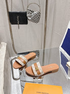 LV Flat Mules pairs raffia brown monogram cowhide 383724