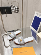 LV Flat Mules pairs raffia gray mix denim cowhide 383720