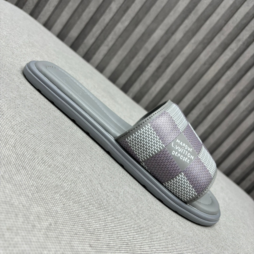 • Premium LV men's slippers, synchronizing with the 2024 early autumn runway collection. The slippers feature a high-quality fabric upper and an original, exclusive comfort sole, ensuring exceptional comfort. These are original factory-followed products.