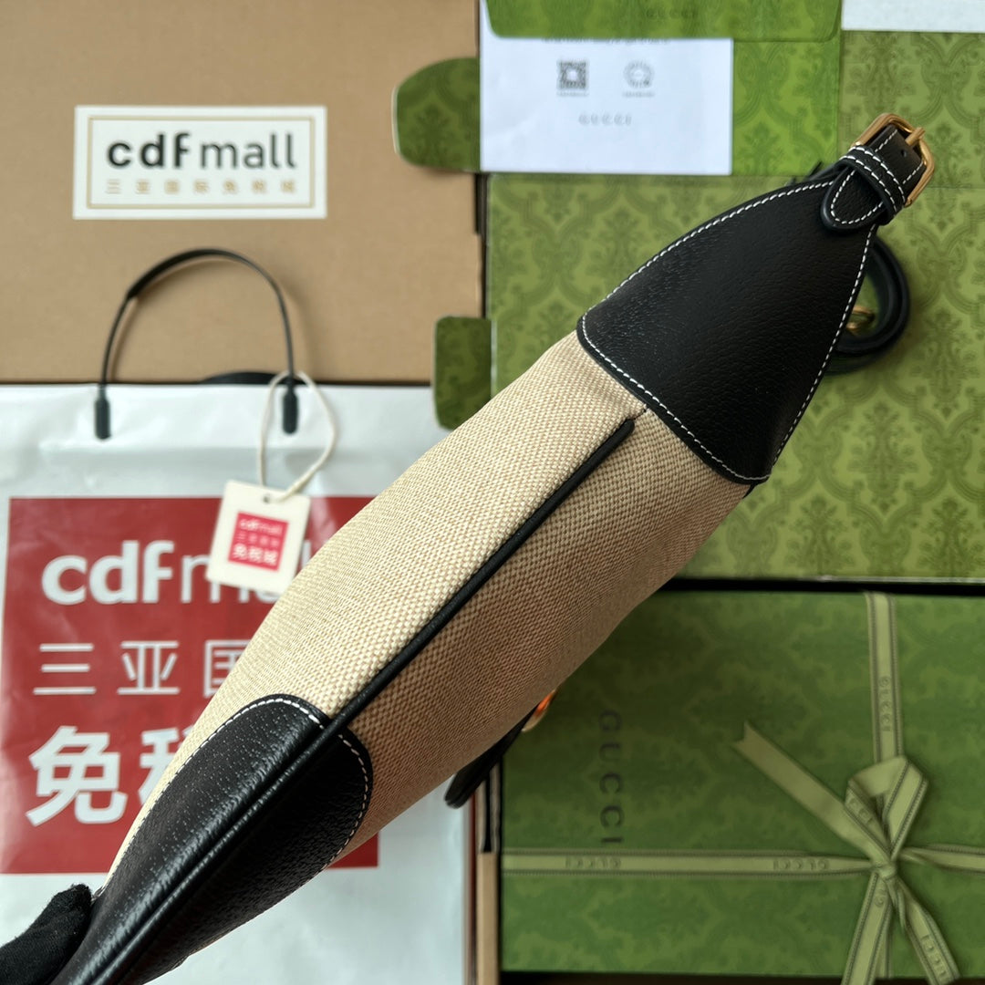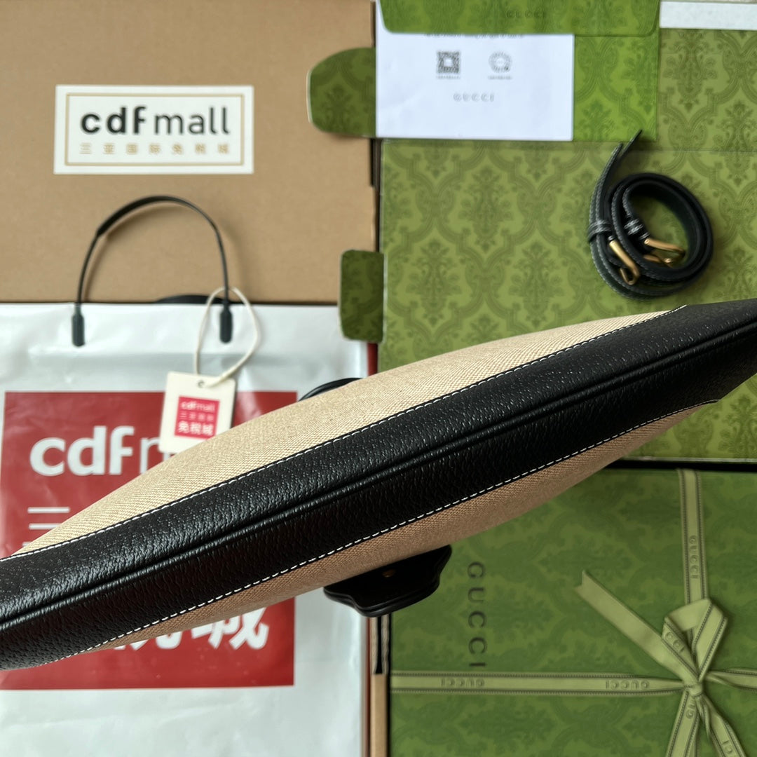 MEDIUM APHRODITE 39 BAG IN BEIGE CANVAS AND BLACK CALFSKIN GOLD HARDWARE