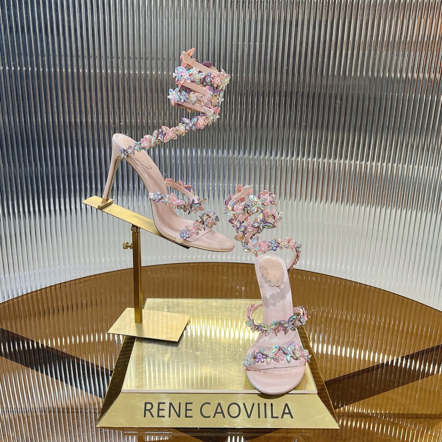 RC 25C Butterfly Flower High Heels Sandals Pink Sheepskin Rhinestone 281974