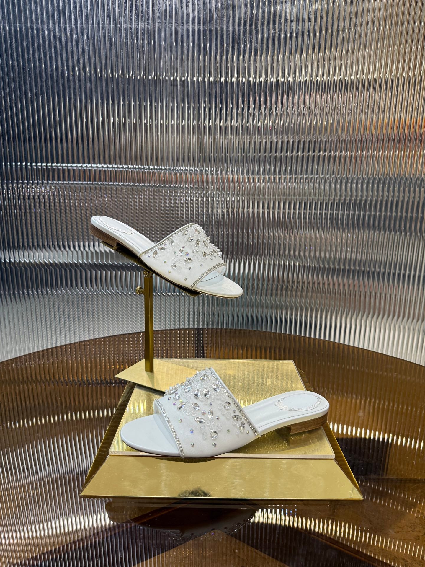 RC 25C Butterfly Flower Sandals Slippers White Sheepskin Rhinestone 275764