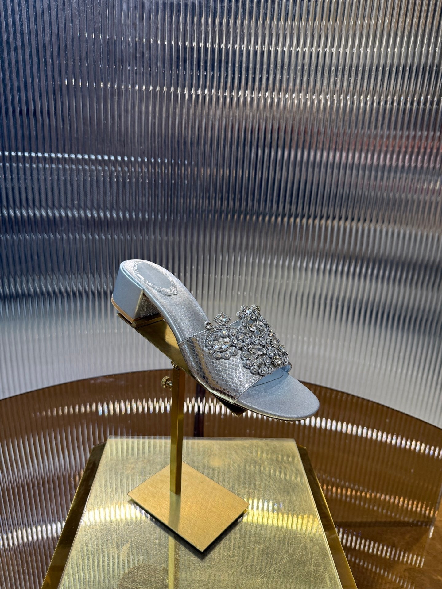RC 25C Slippers 4.5cm Silver Sheepskin Rhinestones 310641