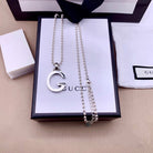 STERLING SILVER LETTER DOUBLE G LOGO PENDANT VERSATILE NECKLACE
