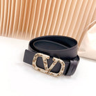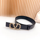 Vlogo Brown Black White Stone Gold Buckle Belt 40mm Black Leather
