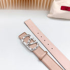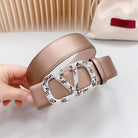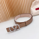 Vlogo Brown Black White Stone Silver Buckle Belt 40mm Brown Light Pink Leather
