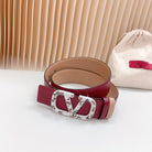 Vlogo Brown Black White Stone Silver Buckle Belt 40mm Wine Beige Leather