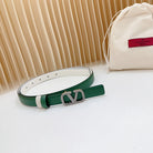 Vlogo Buckle Water Wave Silver Copper Glossy Dark Green White Leather 20mm Belt